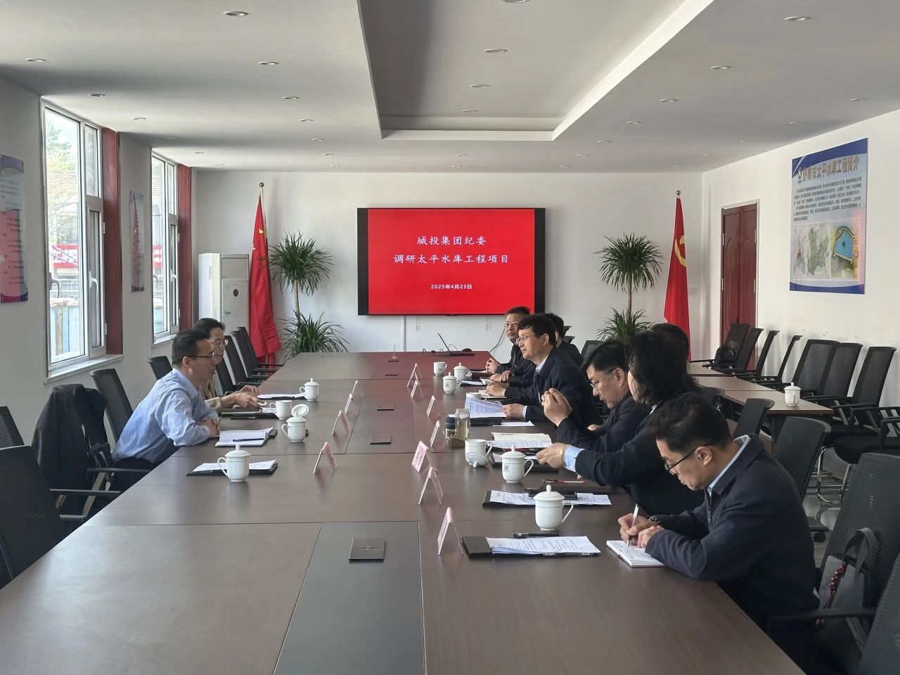 4月23日,济南城投集团党委委员、纪委书记、监察专员李凯,纪委副书记陈朝晖一行到济南市太平水库工程围绕深入贯彻中央八项规定精神学习教育、党风廉政建设开展情况进行调研,深入了解工程建设情况,同时对工程建设招标投标领域突出问题进行检查。英国上市公司官网365领导班子及相关部室负责人陪同调研。